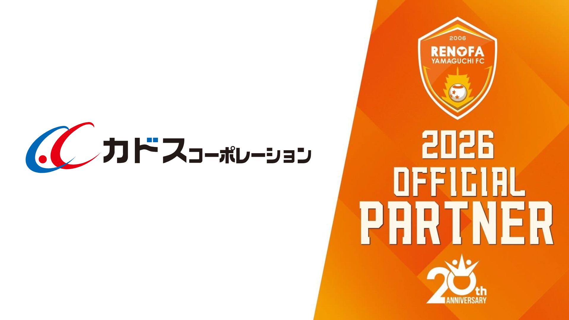 この度、株式会社カドス・コーポレーション(本社:山口県山口市、以下「当社」)は、サッカーJリーグに所属する株式会社レノファ山口(本社:山口県山口市、以下「レノファ山口」)と2026年シーズンのオフィシャルパートナー契約を継続したことをお知らせいたします。